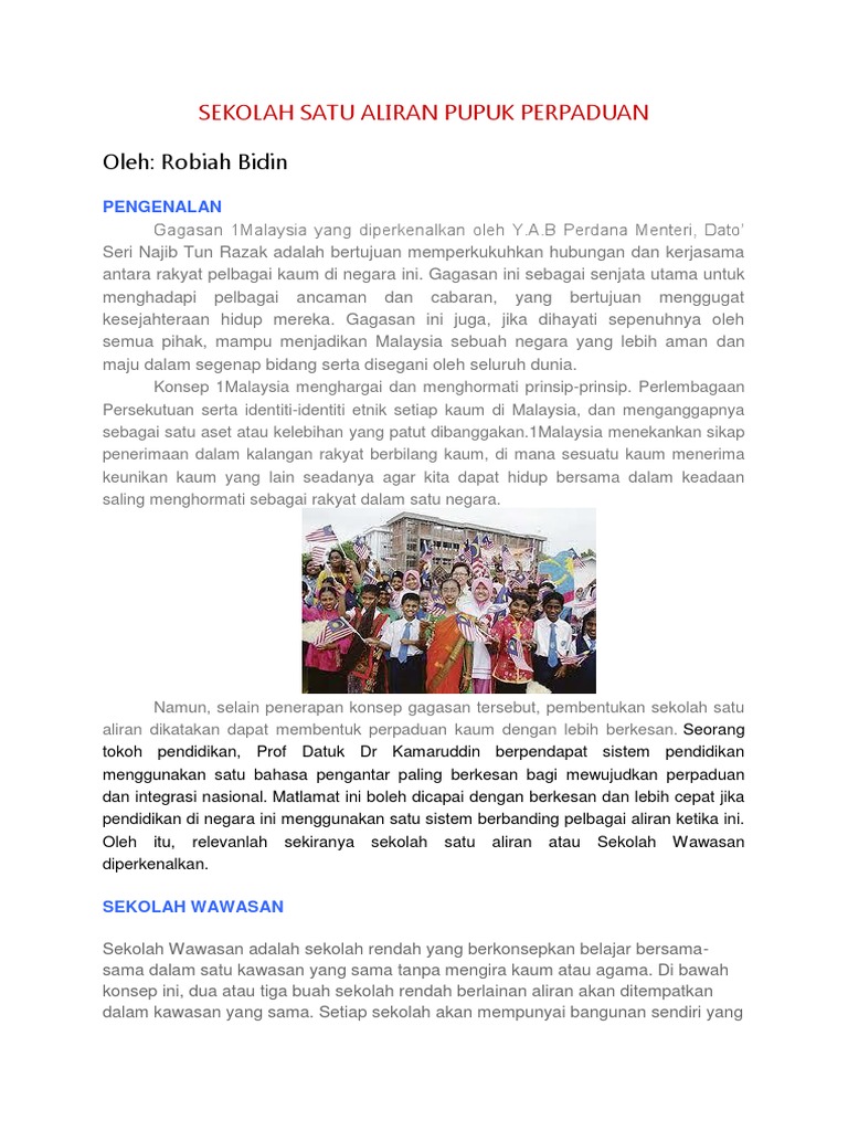 Sekolah Satu Aliran Pupuk Perpaduan Pdf